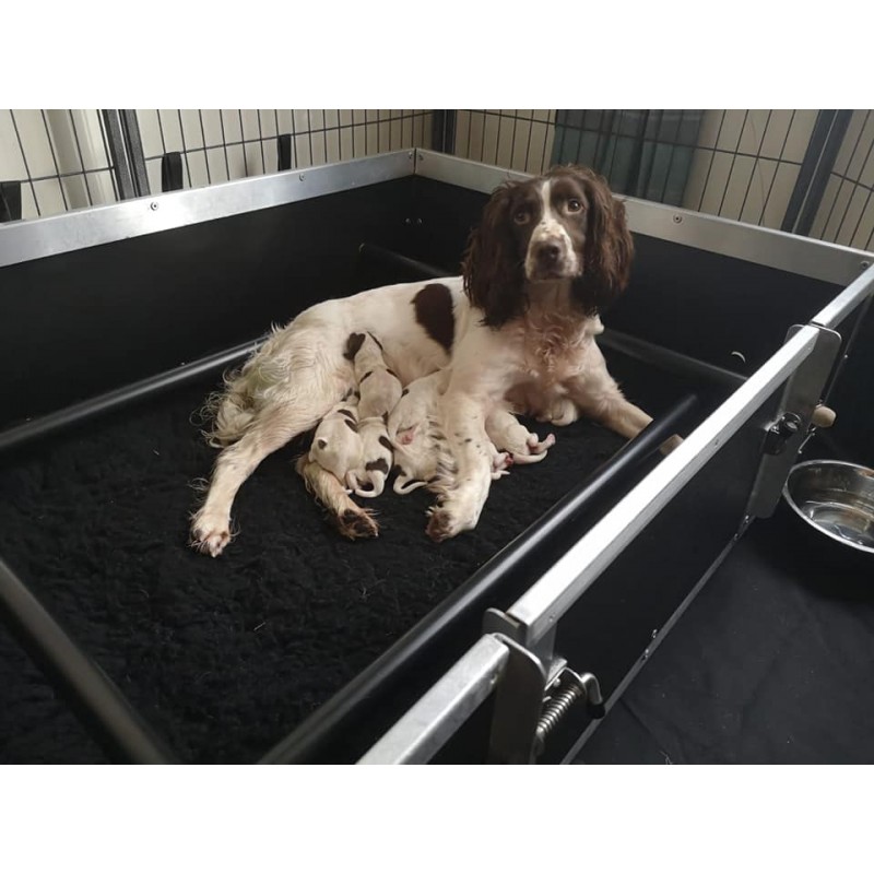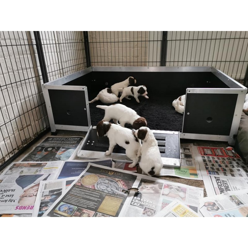 The Bespoke Whelping Box comes with removable, collapsible puppy rails made from aluminium, which are easily screwed together and lift in and out of the box easily for storage.