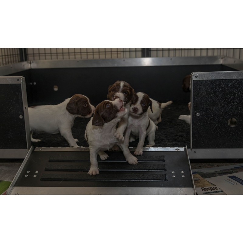 A drop down door is fitted with raised ridges to give the puppies grip as they learn to pass in and out of the box.