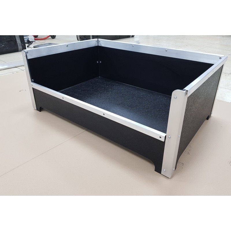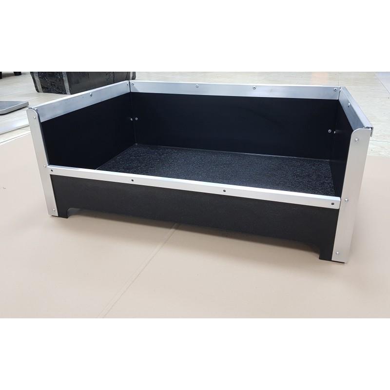 Manufactured in the same 6mm non-porous polypropylene as our high quality Dog Cabins & Dog Boxes. The DROPPED FRONT DOG BED is manufactured with an aluminium frame with all edges & corners covered with an alloy making them totally rot proof & chew proof.
